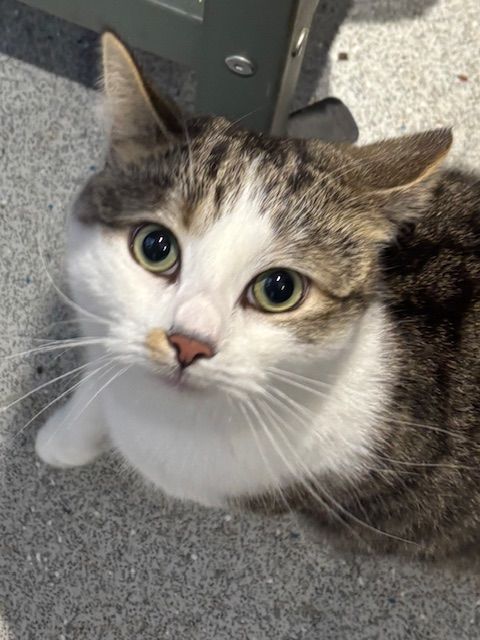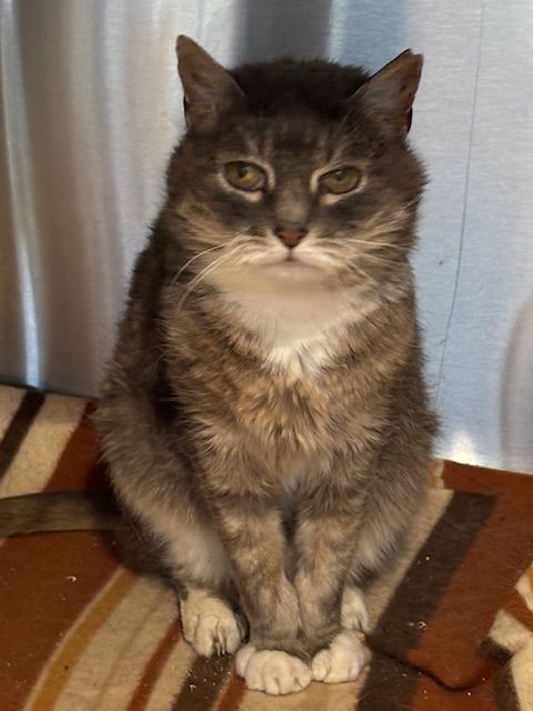 Mo is a 12-year-old tabby girl who is after some peace and quiet. She was found as a stray in Wincham. She'll need patience and persistence, we think she has been mistreated. She will approach you and will chat away. We're now able to stroke her and she's starting to be playful. She's quiet and is after a retirement basket. Aren't we all... She is ok with other cats, no dogs, older children would be ok.