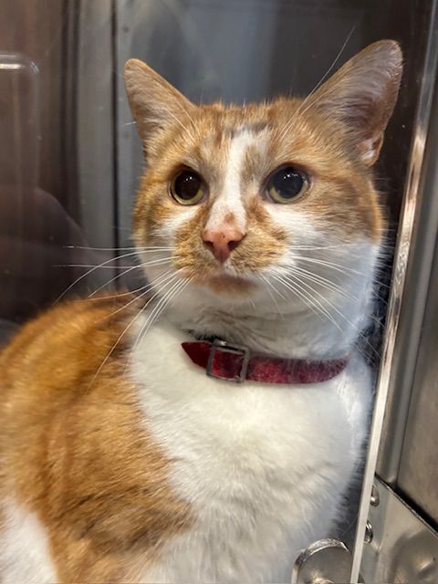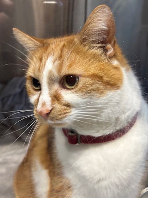 Diddy is a slightly chonky 4-year-old boy, who is ginger and white. His owner died and he is very vocal, enjoys attention (and food) and is a good eater. He can be picked up and enjoys a fuss. He tolerates some cats, no dogs and no young children.