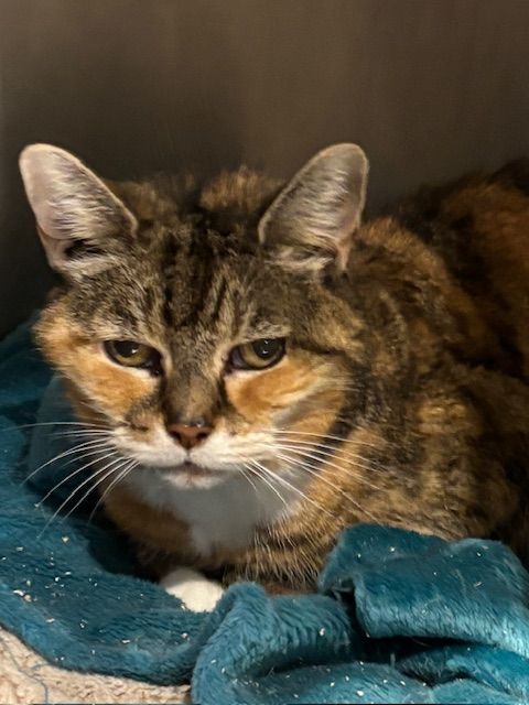 Lexi is a tortie-and-white lady aged around 12-15. She was handed into the vets. She has a very soft, peaceful temperament and is not demanding. She loves a fuss and a cuddle, doesn't travel far and likes quiet and calm as she is deaf. She is ok with other cats but no dogs. She would be ok with older kids. She has a thyroid issue, but it's just a case of some drops in her food, the drops only cost a few pounds.